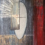 Op ruw canvas zien we een horizon, een nieuw landschap, een rietkraag, een nieuw begin.